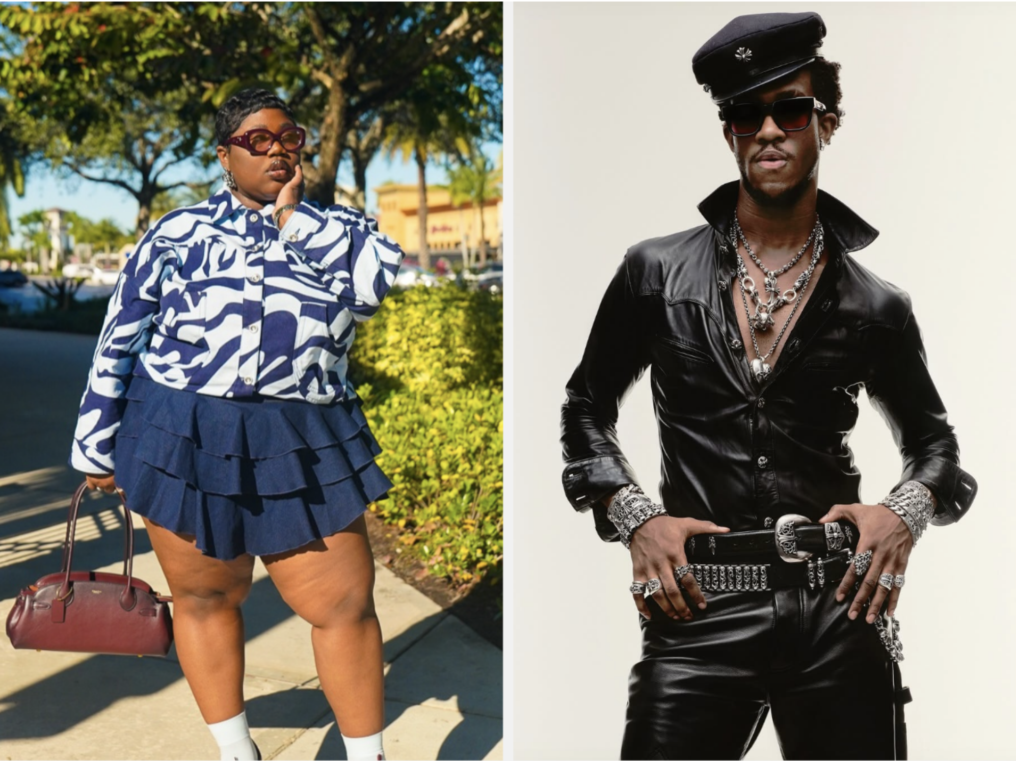 Anaya is a Philadelphia-based content creator who frequently adopts streetwear and thrifting styles. Meaning baggy clothes, large jackets and hats. She boasts an impressive jewelry collection that she often pairs with her street looks. Known for wearing baggy clothes with fitted tops, she always manages to make her outfits look comfortable but stylish. Her content feels relatable, lively, and genuine. As a young entrepreneur, she connects well with her audience by engaging with them and openly sharing styling tips for any wardrobe, regardless of what they have. Some brands that she mentions are en.route for jewlery, for pants and that baggy signurture look boohooman & Aelfriceden